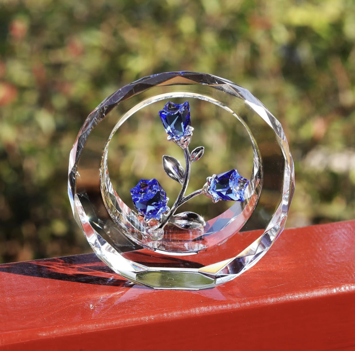 Tulips flower figurines material: k9 crystal flowers and outer frame , which offers a high retractive index and high clarity , it's lead-free: metal, stems which is good rust prevention.Size: 4"H x 4" D