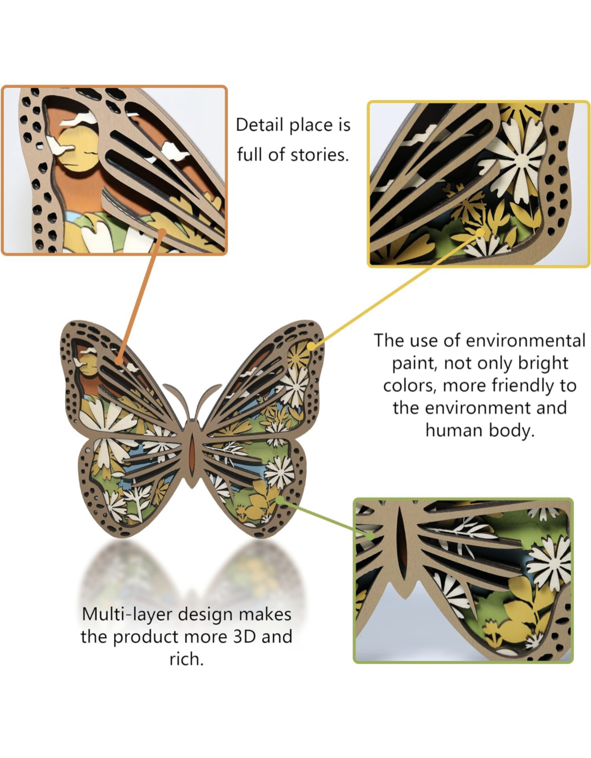 Wooden Carving Butterfly Figurine With Light