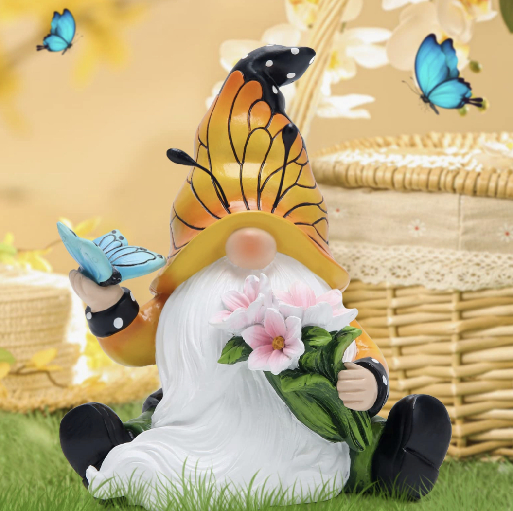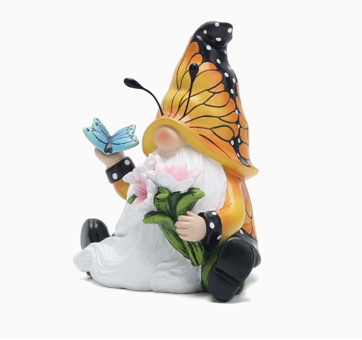 Color: Yellow Butterfly Gnome Scandinavian Tomato Elf Decor Summer Butterfly Gnome Figurine Material: Resin Size: 6 x 4 x 6 Inches Weight 14 Ounces